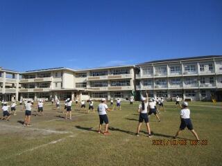 さて、6校時。6年生も最後の体育。ソフトバレー。歓声が響き渡ります。
