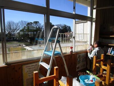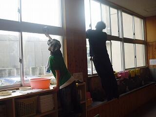 親子で運動場の草取りや、廊下の窓ふきをしていただきました。