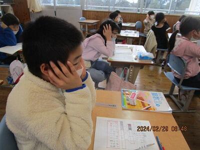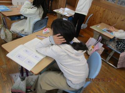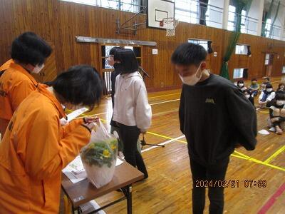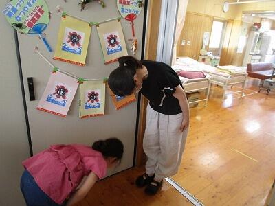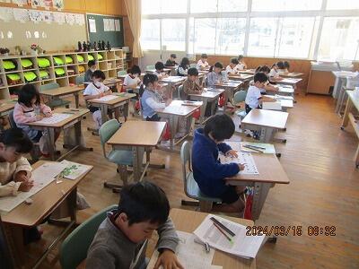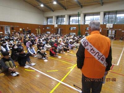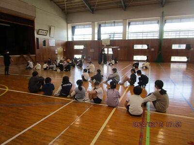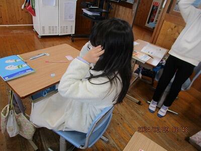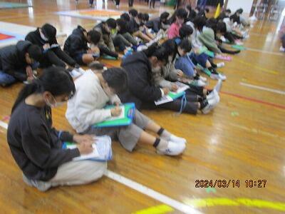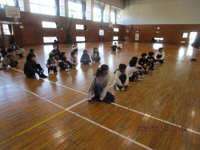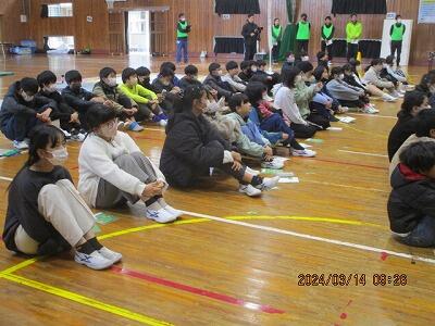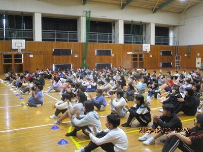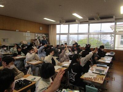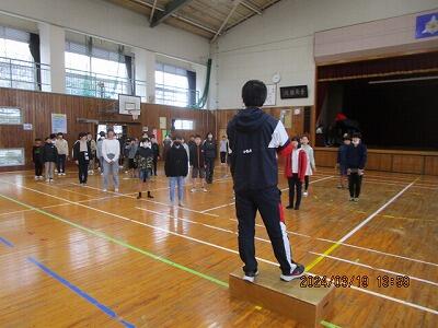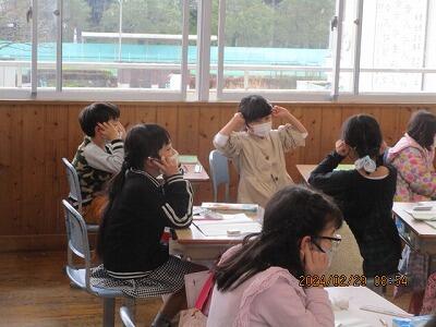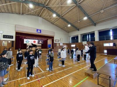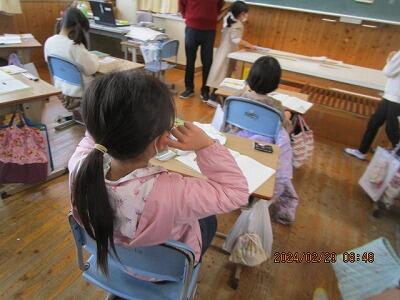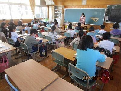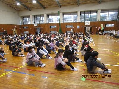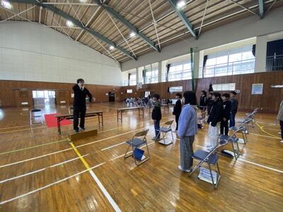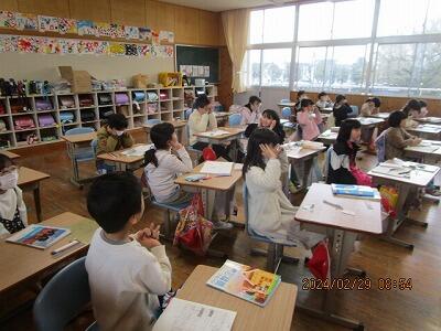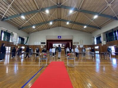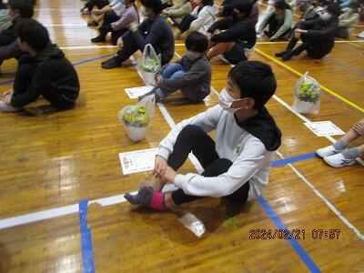 学級担任の先生からの話を聞いたり、呼びかけに答えたりしていました。