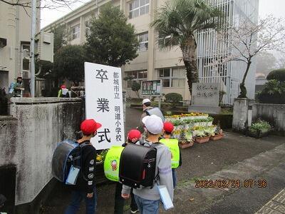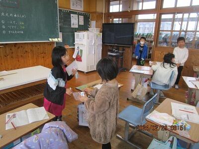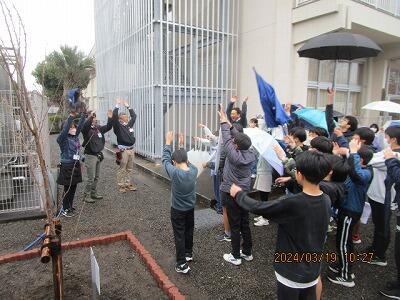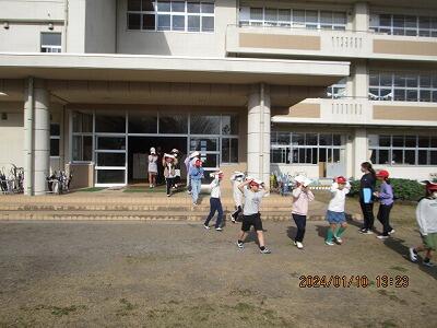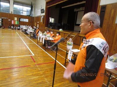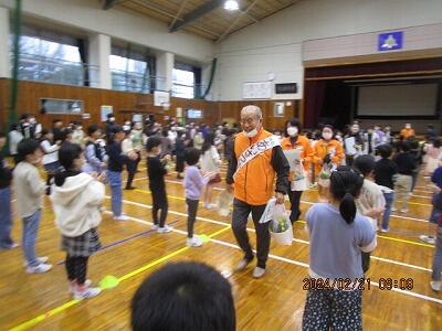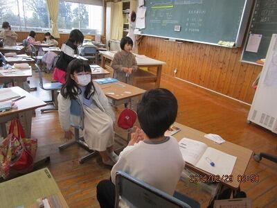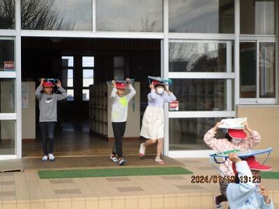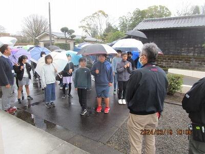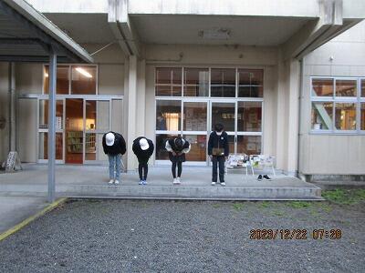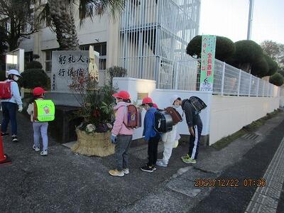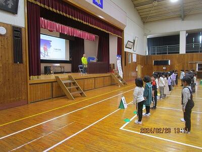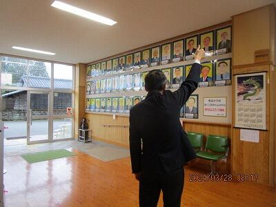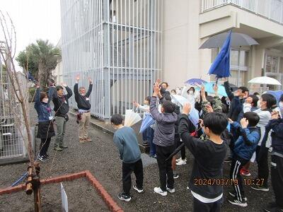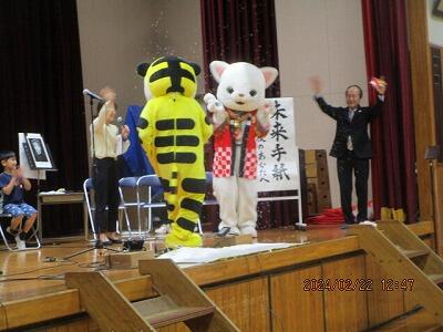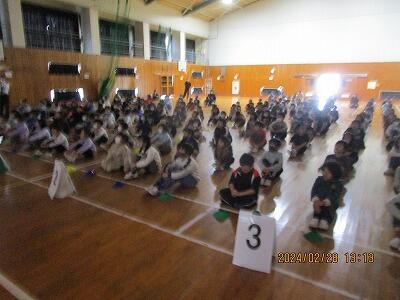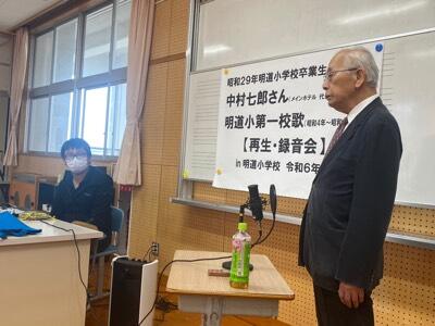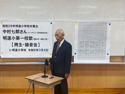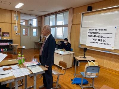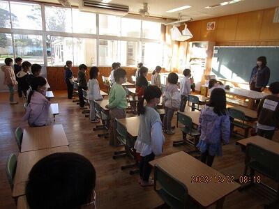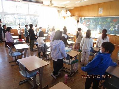 代表児童の号令で、全校児童で明道館学制三章を朗誦しました。