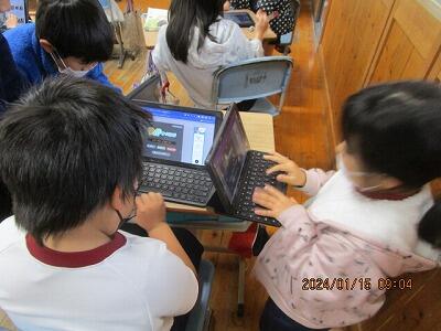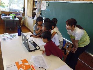 全員ではないし、担任の先生のパソコンの周りに集まって聞いている人もいます。