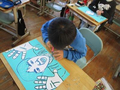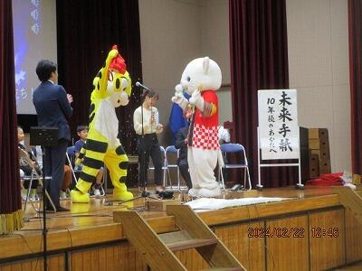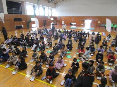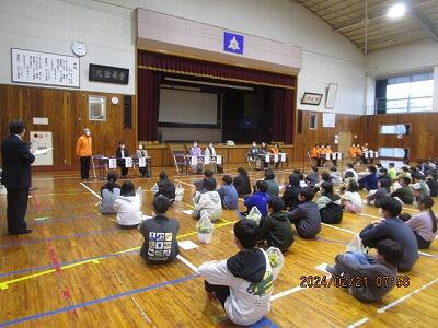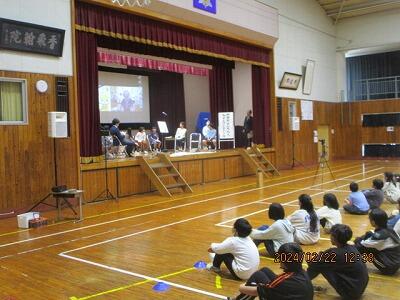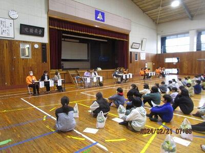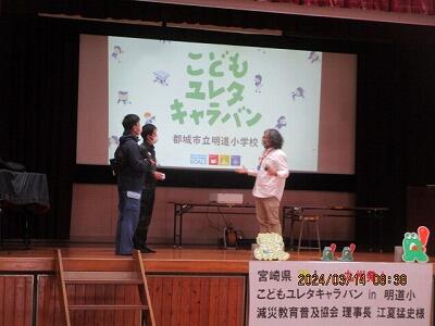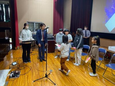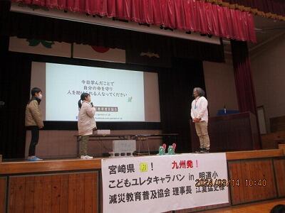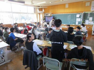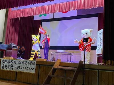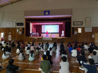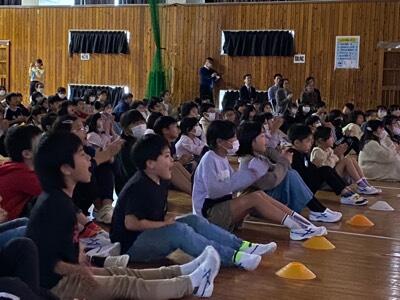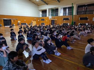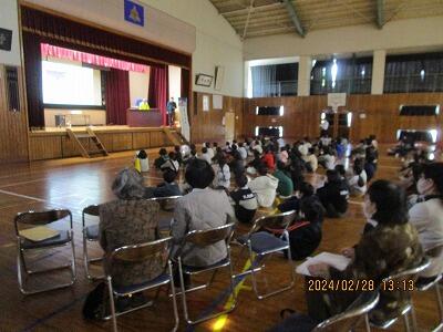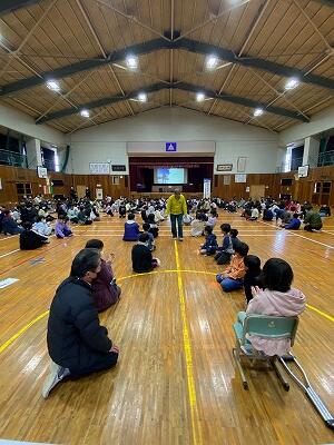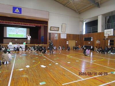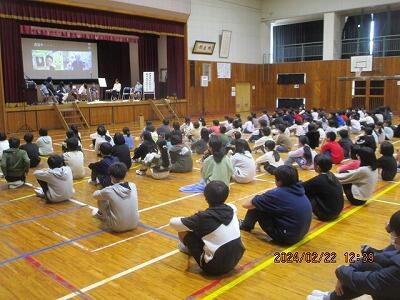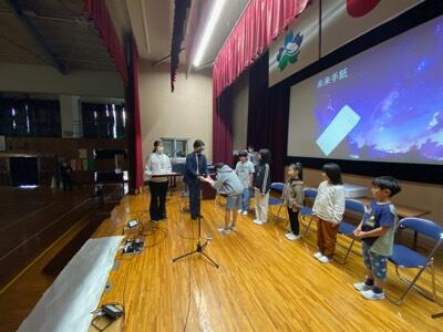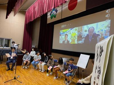えびの市文化センターをメイン会場として、明道小からはオンラインで参加しました。
