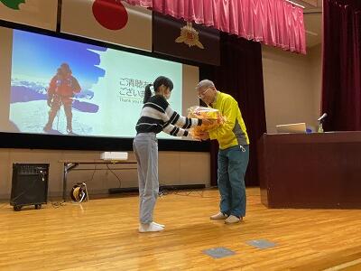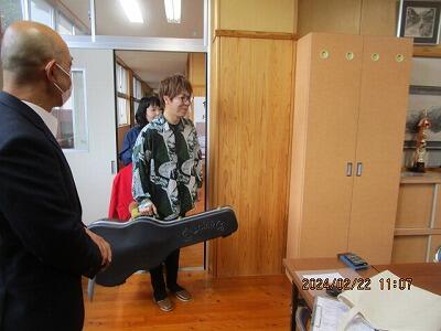 都城市教育委員会の指導主事先生より、「ARE」を手渡しです。
