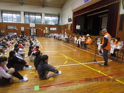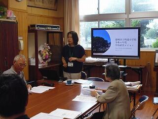 まず、コミュニティ・スクール、地域学校協働活動について広島県府中市の取組を聞きました。また、飯野高校の実践事例についても発表がありました。