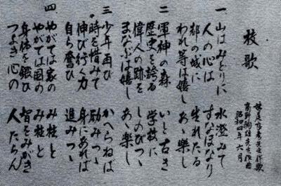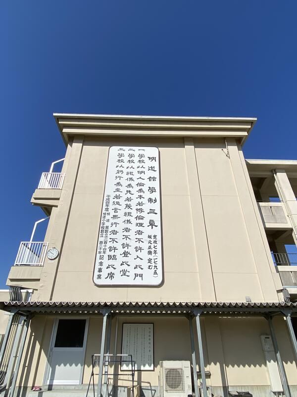 寛政7年(1795年) 当時明道館の学頭(現在の校長)であった坂元正衡さんが定めたとされる、明道小学校にずっと受け継がれてきた明道で学ぶ者の心得です。