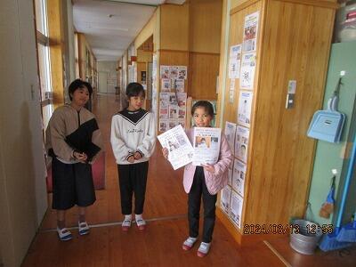 昨日の宮日新聞に掲載されましたが、先週、台風が来る前の日、外山木材(株)さんから図書購入費の寄付をいただきました。児童を代表して、図書委員会委員長が受け取り、図書室に来ていた6年生と一緒に新聞記者からの取材も受け、読書や本への気持ちをそれぞれ答えてくれました。ご寄付により、本年度も図書室の「外山文庫」に新しい本を購入します。
