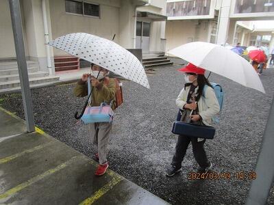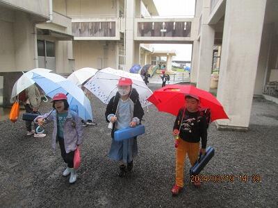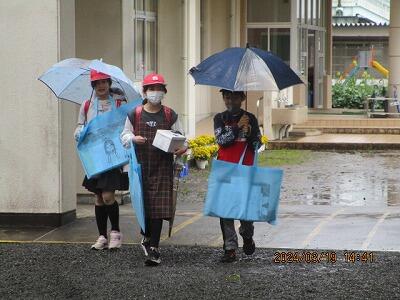 明道っ子たちは、夏休みに作った作品を抱え、元気に登校しました。