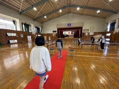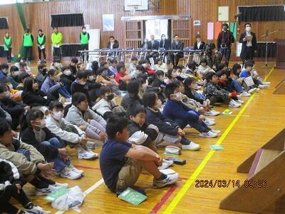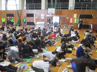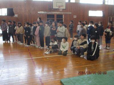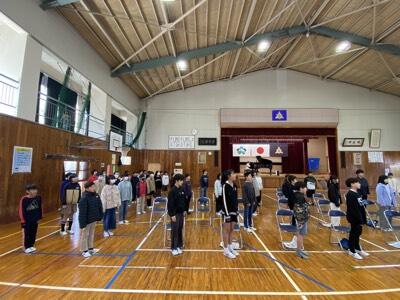 まずはじめに、6年生代表児童の合図に合わせて全校児童で「明道館学制三章朗唱」