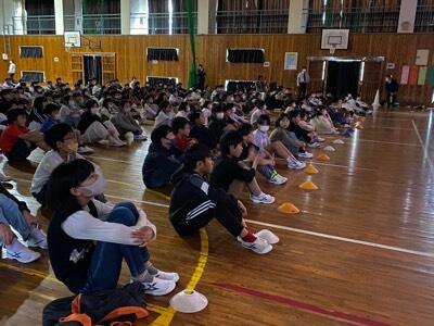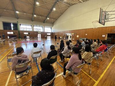 朝から体育館の熱中症指数が高かったために、オンラインで行いました。