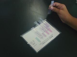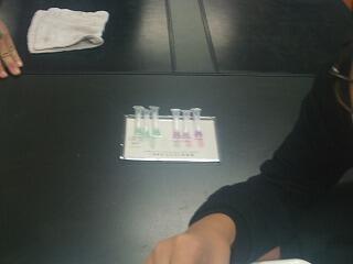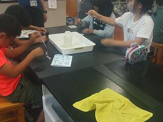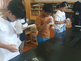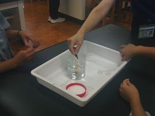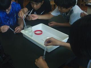 学校に戻ってから、環境政策課の方が汲んでくださった水を調べました。