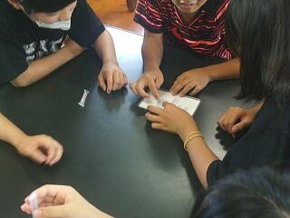川に入って水生生物を採取することができなかったので、持ってきていただいたサンプルを使って調べる学習をしました。