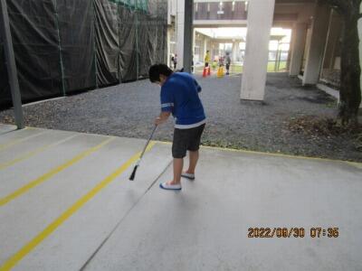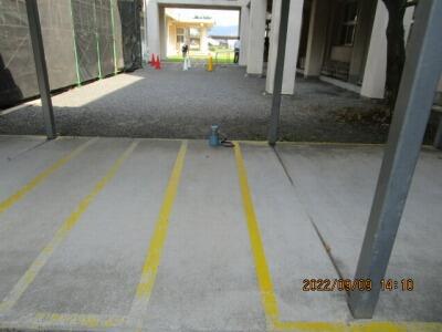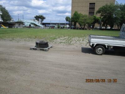 パレットで削られた地面は、みるみる、きれいになっていきます。