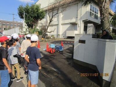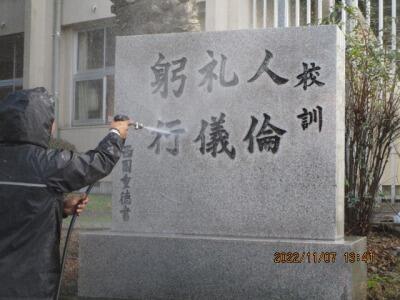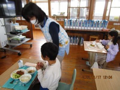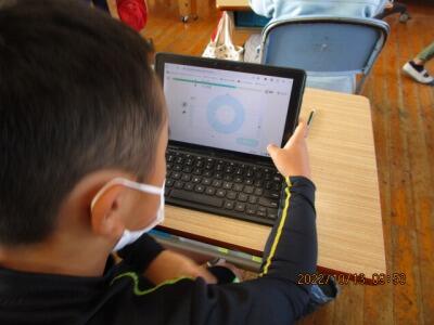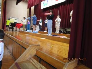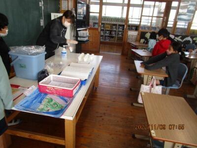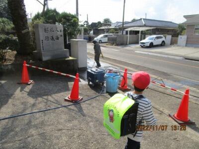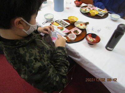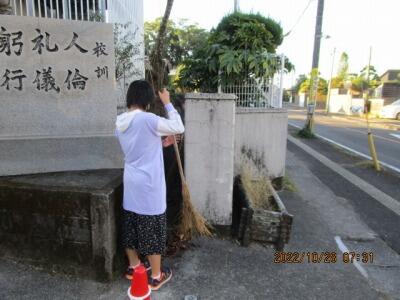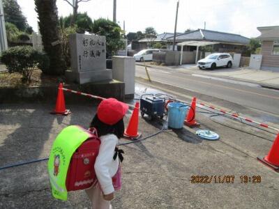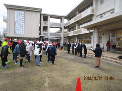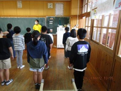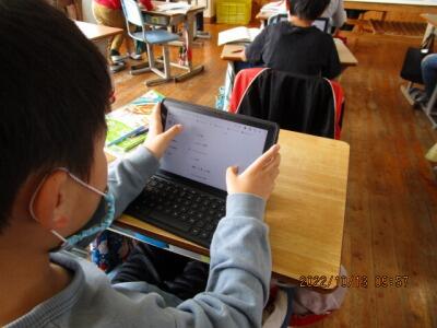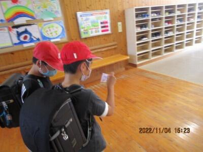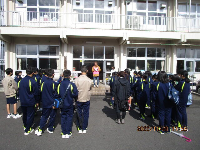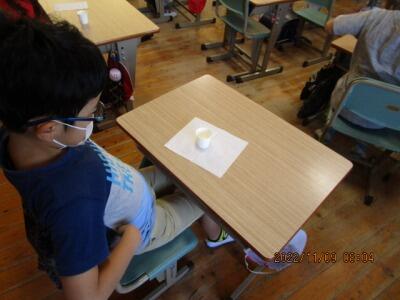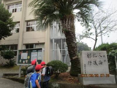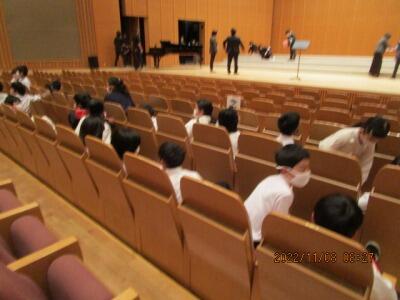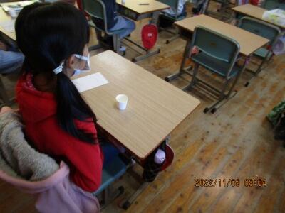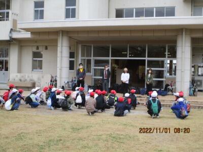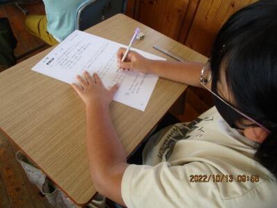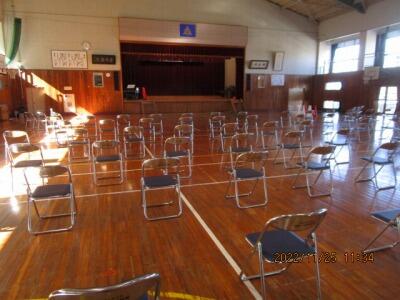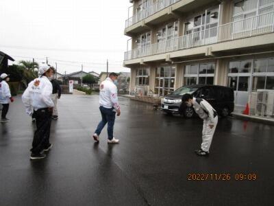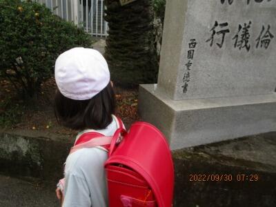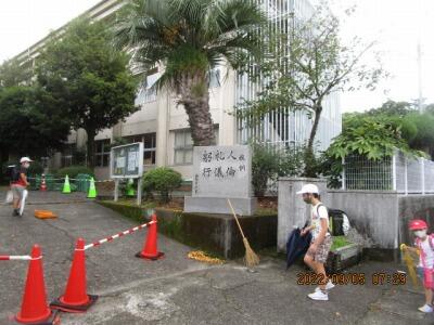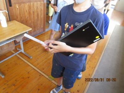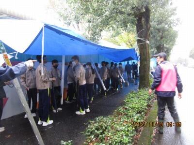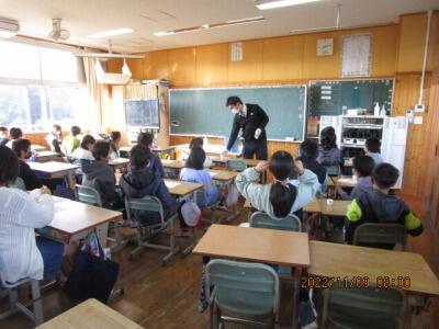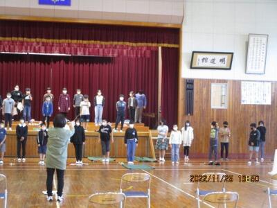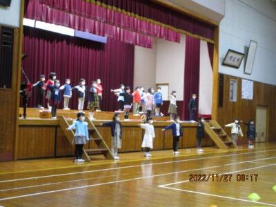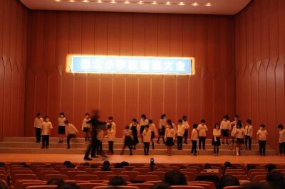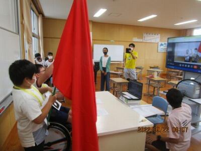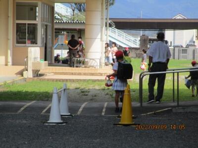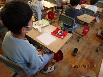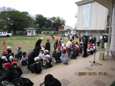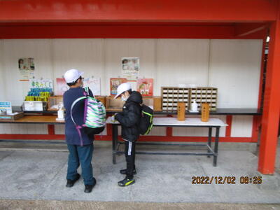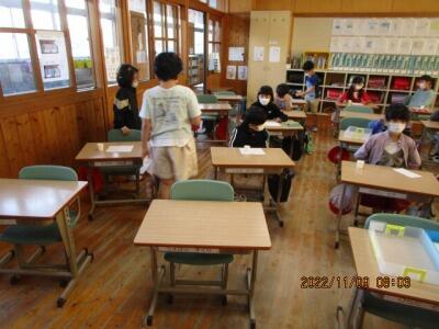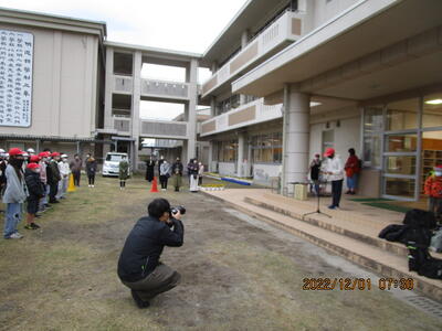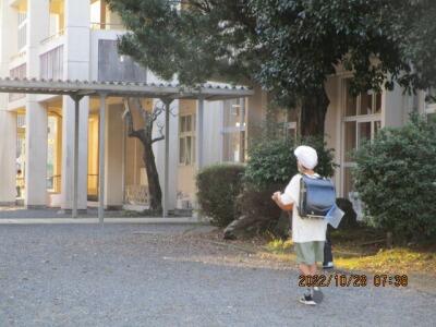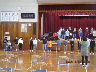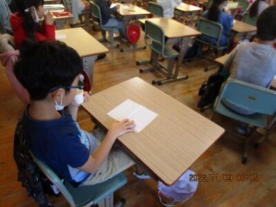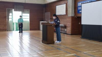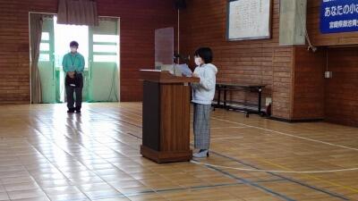 代表児童あいさつ、3年生男児。スタンバイ。緊張気味。
