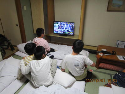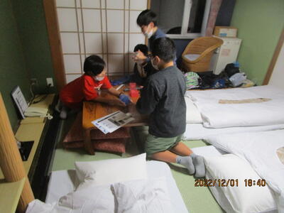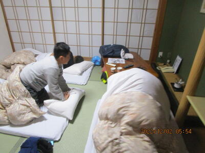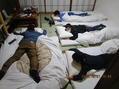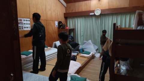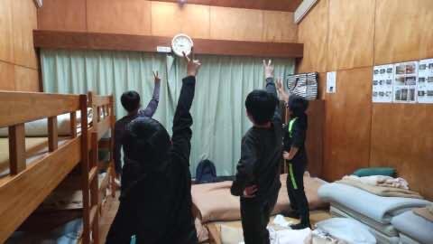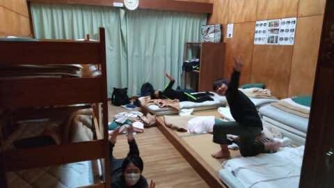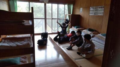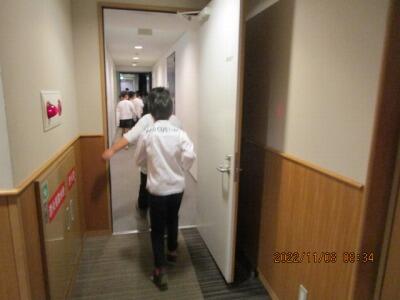先生と添乗員さんは、すべての子どもが寝静まるまで、廊下で監視です