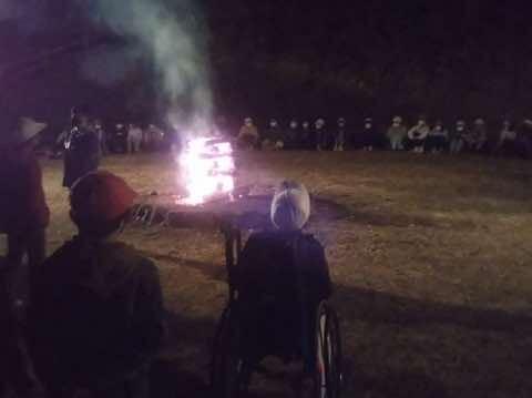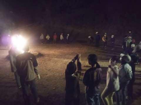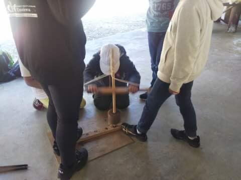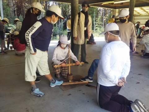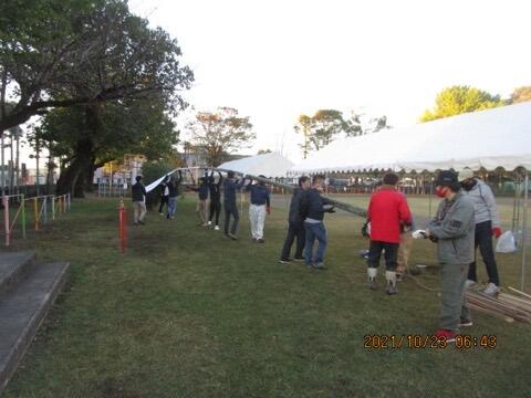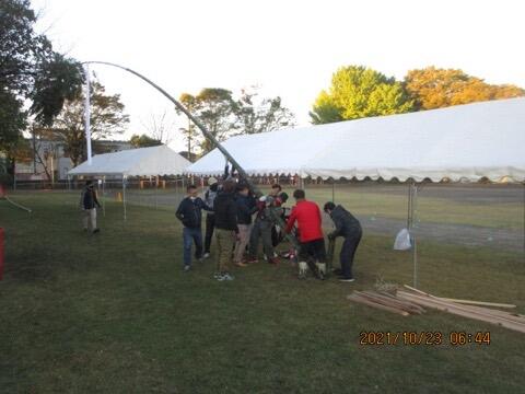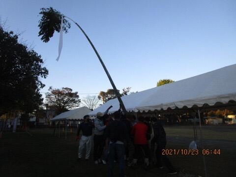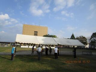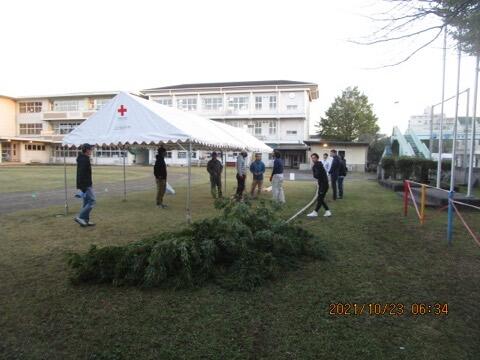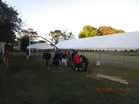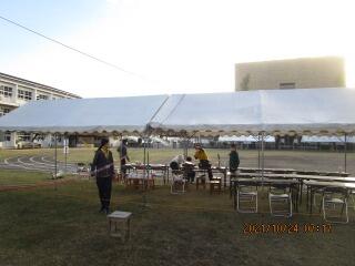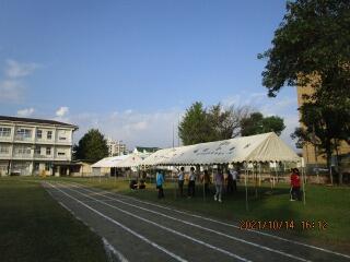 本校は、先生の数も少なめなので、テント張りは総出の作業です。