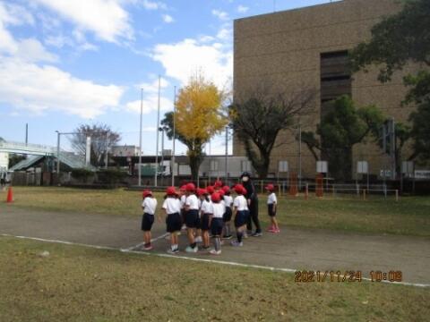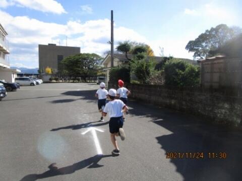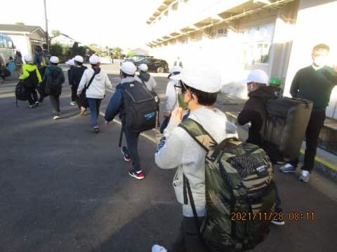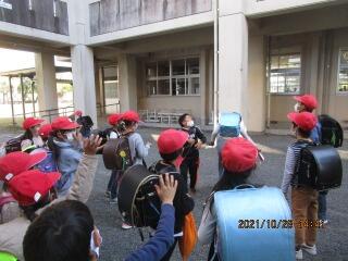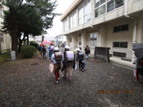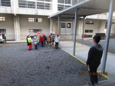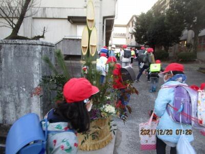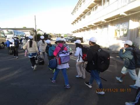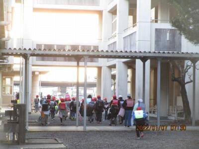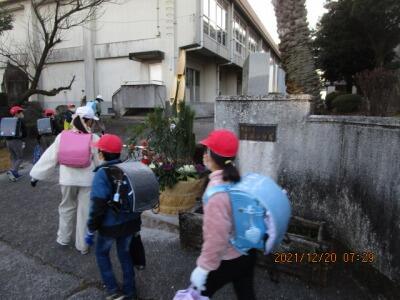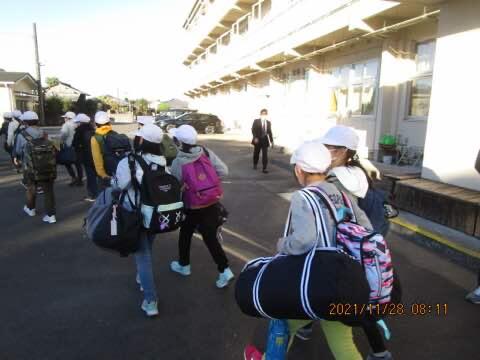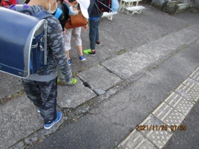 班長が、班員を1列にまとめて、しっかり登校してくれました。
