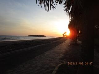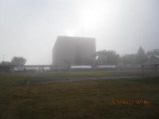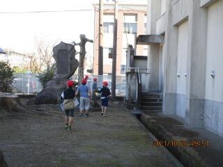 明道小の登校後は、朝日の中に歩いて入っていく感じ。