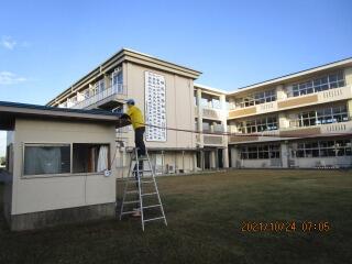 校長が、あいさつ指導を終えると、すでに、高学年の担当者が、国旗を掲揚してくれていました。