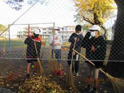6年ボランティア、校庭のお掃除をがんばってくれていました。