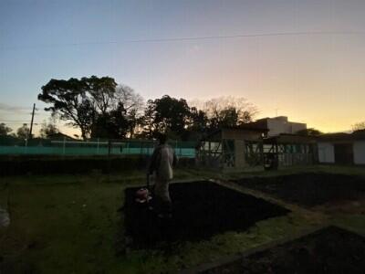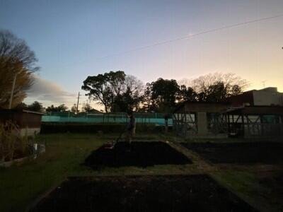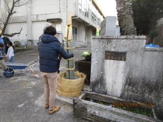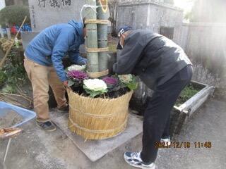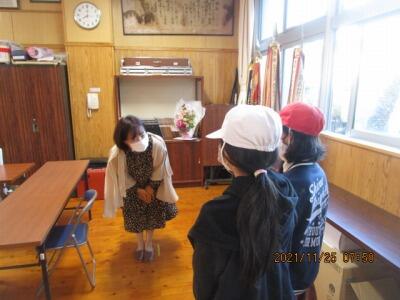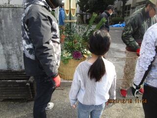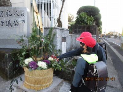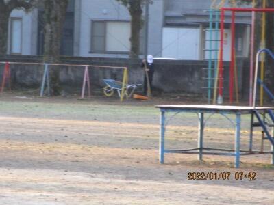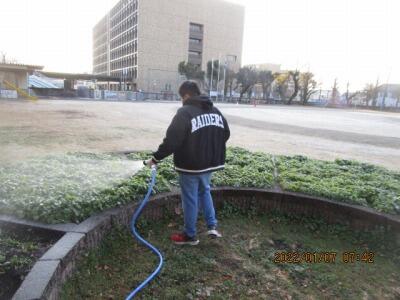 6年ボランティアさん、寒い中、花壇にお水をあげてくれていました。