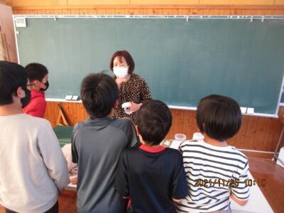 担任先生(役)が、フッ化物を配付します。