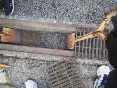 市道の側溝の蓋に、異常が認められました。
