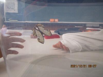 「校長先生、葉っぱが凍ってます!」
