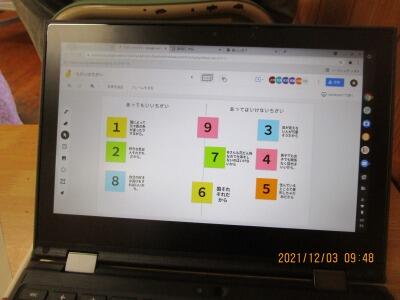 自分達の考えを。クロームブックで分類。