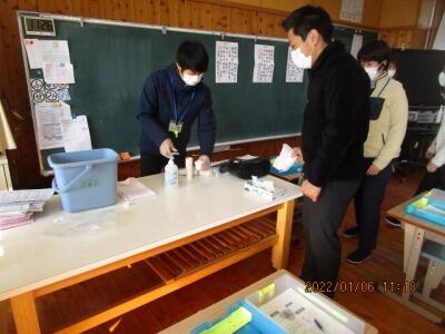指導をしたことのない先生もおられますので、みんなで、作業の流れ、気を付けることなどを確認・練習しました。
