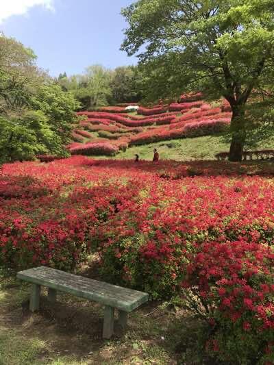 この公園のつつじの「赤」は、本当に真っ赤で、鮮やかです。