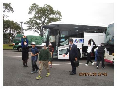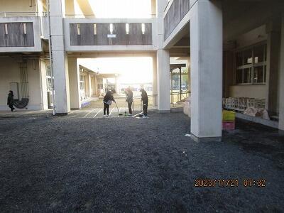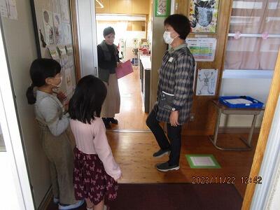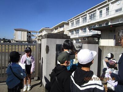あいさつボランティアは登校児童を温かく迎え入れます。
