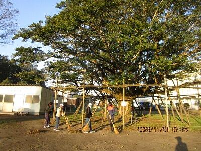 クロガネモチの木の下は、葉っぱが散り始めました。