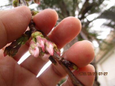 桜のつぼみが、間もなく「ピンク色に染まりそうです」