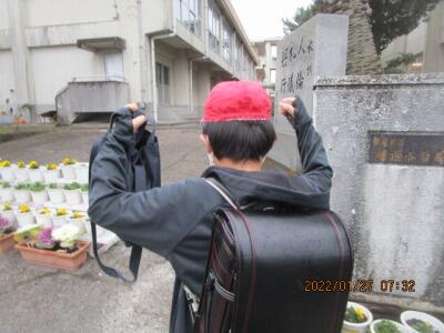 そして、写真をとっている、このポジションで、校長が子ども達に「さようなら、気を付けて!」を言っている。
