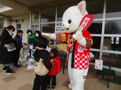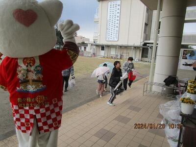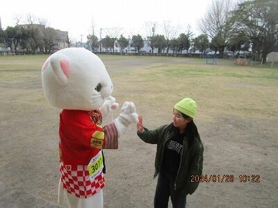 なんと、ユキちゃん、マラソン大会を抜け出して、レッツゴー明道イベントの応援に来てくれたのでした。