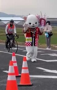 確かに、ユキちゃんの腰には、三股んマラソンのゼッケンがついていました。