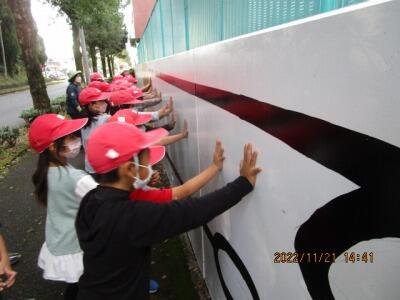 子供達、いつまでも、いつまでも、何回も、壁画に触り続けました。