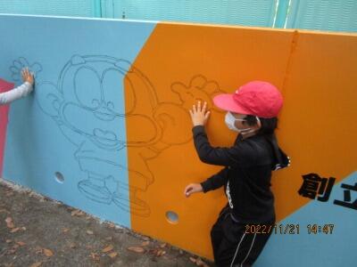 ここに、僕の孫が、50年後に、手形を、押すのかあ・・・。