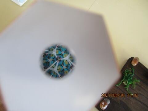 明かりを入れて、燈籠になるのかな?折り紙細工を、とてもていねいに貼ってあります。