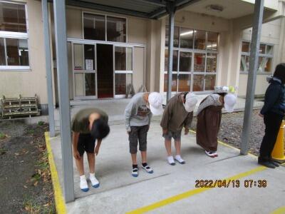 6年生から引継いだ、「ボランティアのほうき」、伝統は私たちが守る!