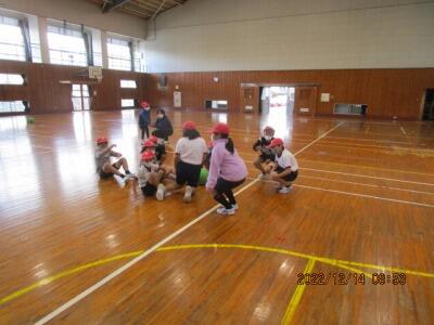 しばらくして、また、体育館に行くと、キャッチボールは終っており。