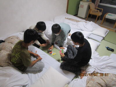 先生と添乗員さんは、すべての子どもが寝静まるまで、廊下で監視です