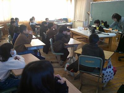 学校給食の歴史や、給食にどのような人々が関わっているかの話を聞いた後、