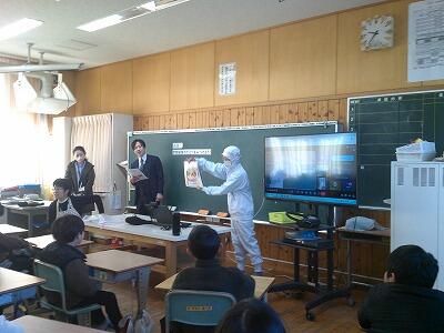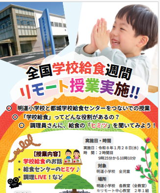 明道小と都城学校給食センターをつないでの授業を行いました。