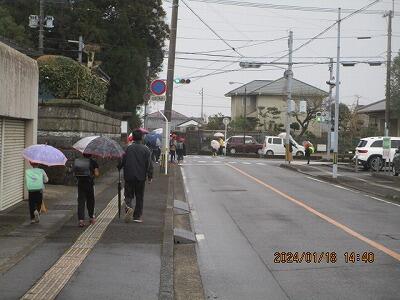 小雨の中、先生方も子ども達を守るために、一緒に歩いて下校です。