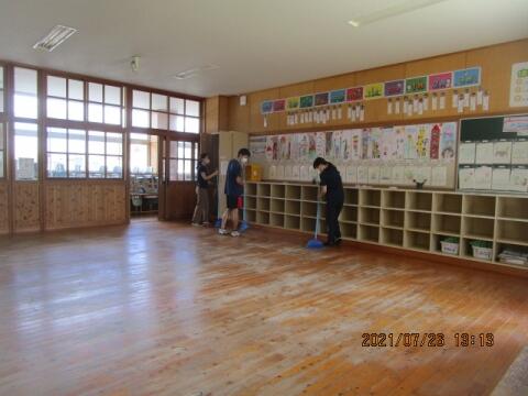 さあ、みんなで、ワックスかけです。子どものためなら、エンヤコラサ!