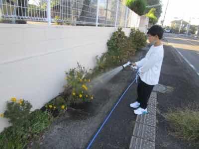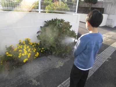 飼育栽培委員会の6年生は、毎日、枯れかけたマリーゴールドにお水をあげました。