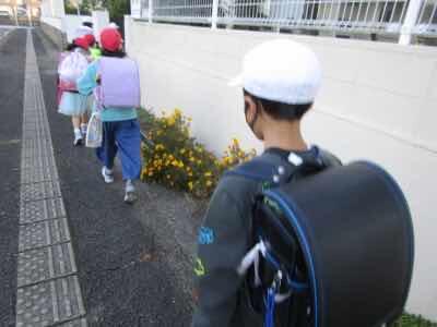 正門前の歩道に、ご近所のボランティアの方が植えられたマリーゴールド畑があります。
