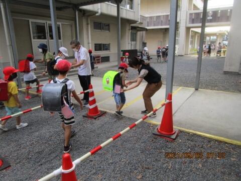 早くから登校したボランティア先生方が、毎日、確実に、事前チェックを行います。