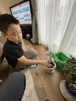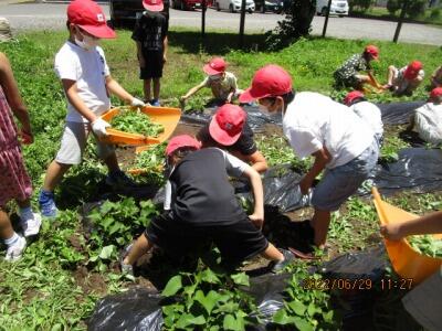 みんなで植えたおいもさん、草が生えてたから、みんなでぬいたんだよ。